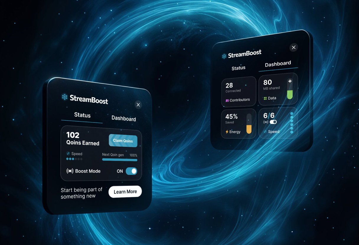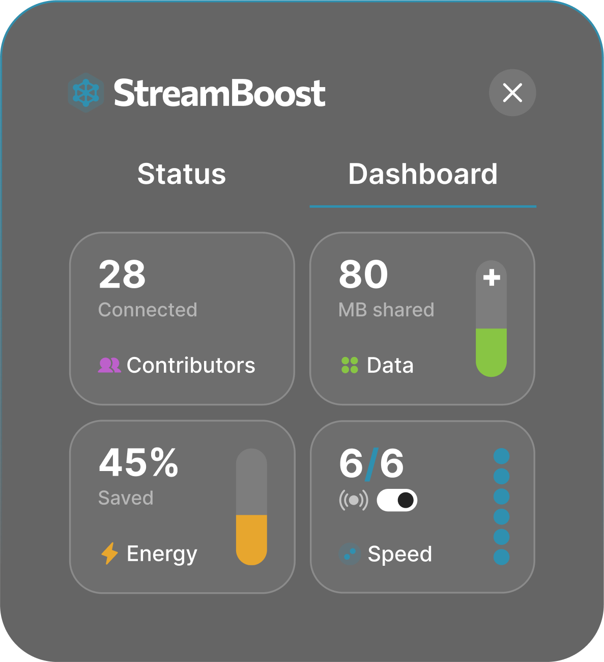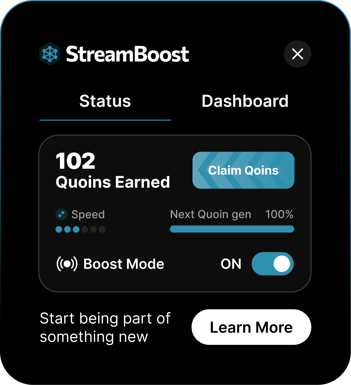 StreamBoost is a pop-up inside the video player that lets you safely share part of your connection to support video delivery and to get rewarded just for watching.