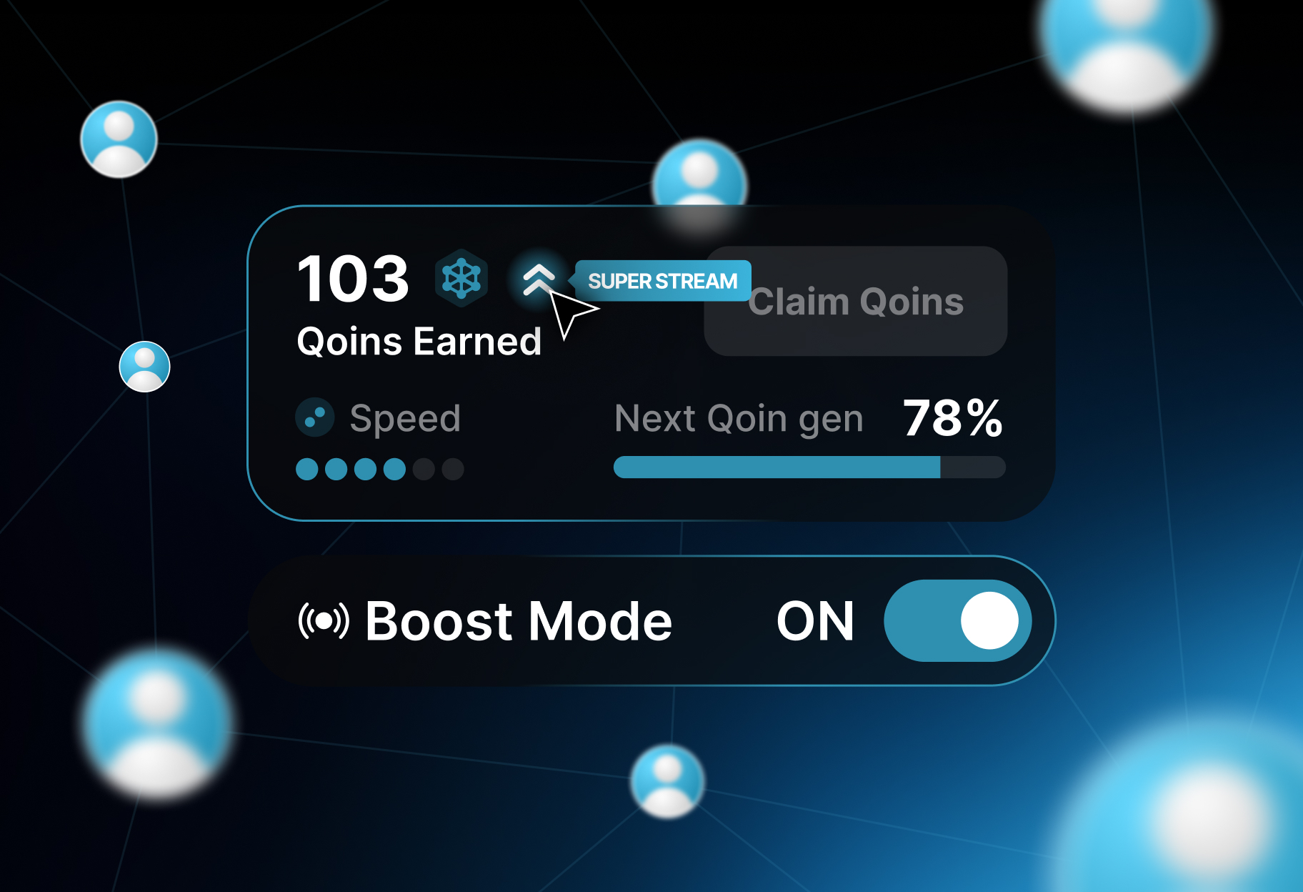 The more you share, the more you generate rewards (called Qoins) and the faster you climb the rankings within the streaming community.